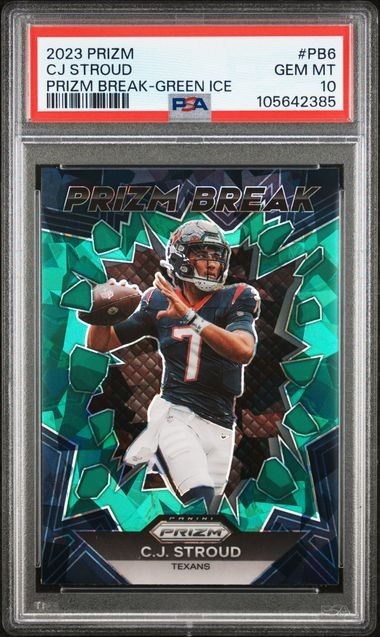2023 Panini Prizm Football Prizm Break Green Ice Prizm #PB6 CJ Stroud RC PSA 10